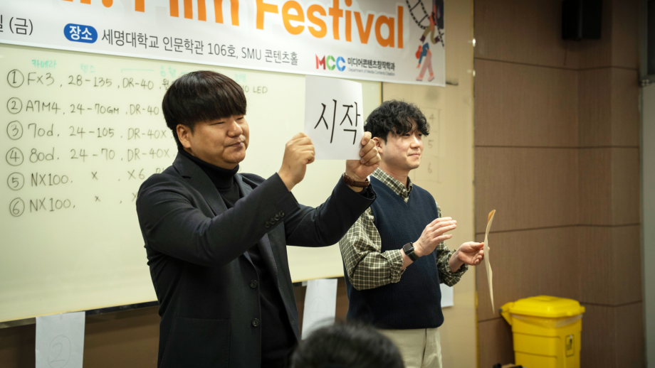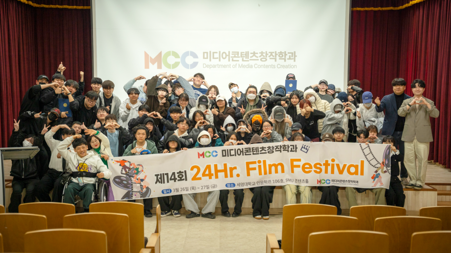 본문 시작 홈으로 MCC News 학과소개 교수소개 학과과정 MCC News MCC SNS 홈페이지가이드 학과 및 재학생 학과 및 재학생 교수 및 졸업생 미디어 정보통 학과 및 재학생 페이스북 트위터 프린트 제14회 24시간 필름 페스티벌 미디어콘텐츠창작학과 63 2026-04-01 미디어콘텐츠창작학과의 행사인 24시간 필름 페스티벌이 3월 26일부터 27일까지 24시간 동안 진행되었습니다. 학과 대표 행사인 24시간 필름 페스티벌은 24시간 동안 주어진 주제에 맞게 각본, 촬영, 편집을 통해 작품을 만드는 행사입니다. 올해는 총 6개의 팀으로 나누어져 ’시작‘을 주제로 영상을 제작했습니다. 학생 여러분 모두 24시간 동안 쉬지 않고 작품 제작 하시느라 고생 많으셨습니다! 목록 이전2026학년도 미디어콘텐츠창작학과 개강총회 담당부서 : 미디어콘텐츠창작학과 담당자 : - 연락처 : 043-649-1741 최종수정일 : 2024-10-26 만족도조사 만족도 조사 이 페이지에서 제공하는 정보에 대하여 만족하시나요? 매우만족 만족 보통 불만족 매우불만족