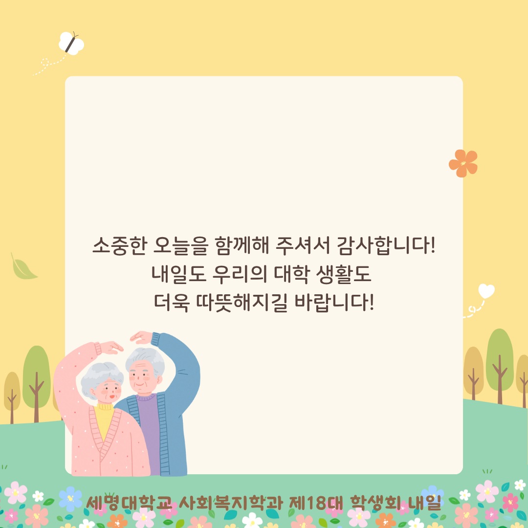 안녕하십니까! 세명대학교 사회복지학과 제 18대 학생회 내일입니다☀️