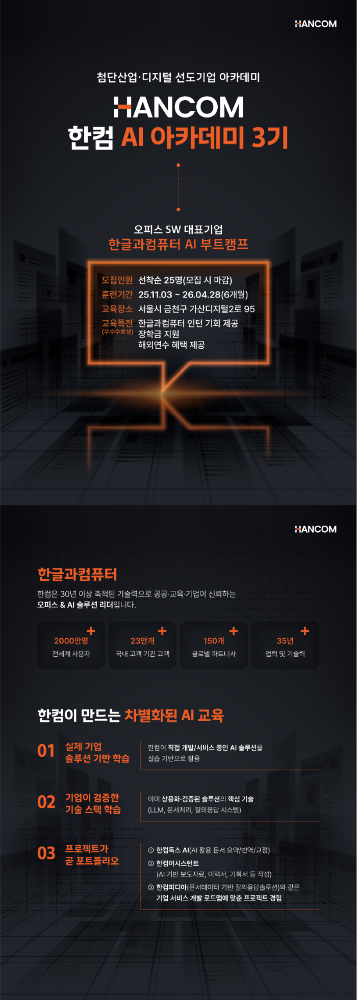 한컴 AI 아카데미 3기 교육생 모집 안내