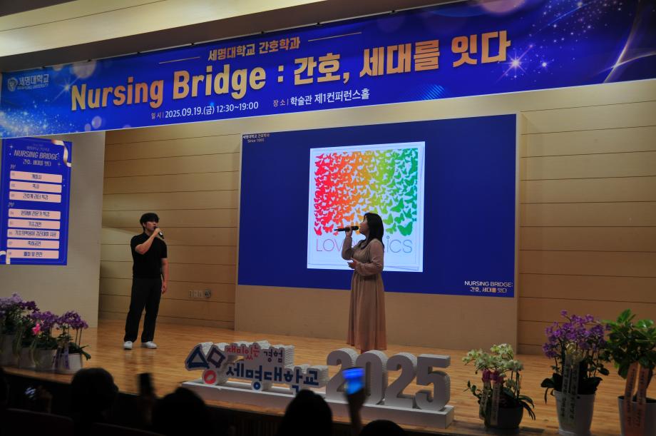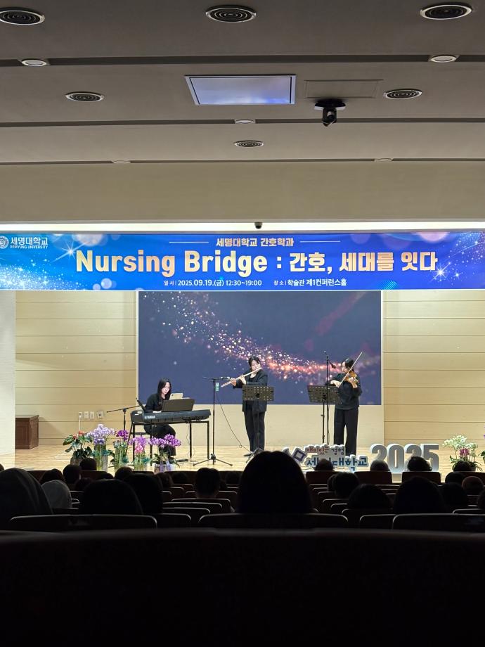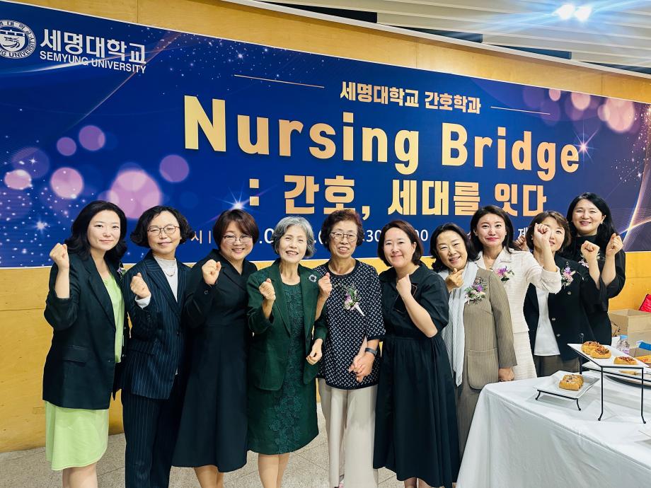 본문 시작 홈으로 커뮤니티 학과소개 교수소개 교육과정 학과소식 학과특성화 사업 커뮤니티 홈페이지가이드 포토갤러리 학사일정 포토갤러리 학생회 학과동아리 학과 취업정보 동창회 학과운영개선의견 발전기금 포토갤러리 페이스북 트위터 프린트 🎉 세명대학교 간호학과 30주년 기념행사 🎉 Nursing Bridge: 간호, 세대를 잇다 간호학과 379 2025-09-24 이번 행사에는 신경림 대한간호협회장님의 기조강연과 정승교 명예교수님의 특별강연이 있었습니다. 권동현 총장님을 비롯한 각 부처 처장님, 명지병원 병원장님, 간호부장님 등 여러 기관에서도 직접 참여해주시고, 축하영상 및 화환을 보내주시어 자리가 더욱 빛났습니다. 1기 졸업생부터 현 재학생까지 500여명이 한뜻으로 모여 뜻깊은 시간을 보냈습니다. 과거와 현재, 그리고 미래의 간호를 잇는 ‘Nursing Bridge’ 그 감동의 순간들입니다. 목록 이전🎓 [2025학년도 핵심간호술 졸업인증제 – 선배님들의 모교 방문] 다음 2025년 2학기 간호학과 교학간담회 담당부서 : 간호학과 담당자 : 서예지 연락처 : 043-649-1357 최종수정일 : 2024-10-26 만족도조사 만족도 조사 이 페이지에서 제공하는 정보에 대하여 만족하시나요? 매우만족 만족 보통 불만족 매우불만족