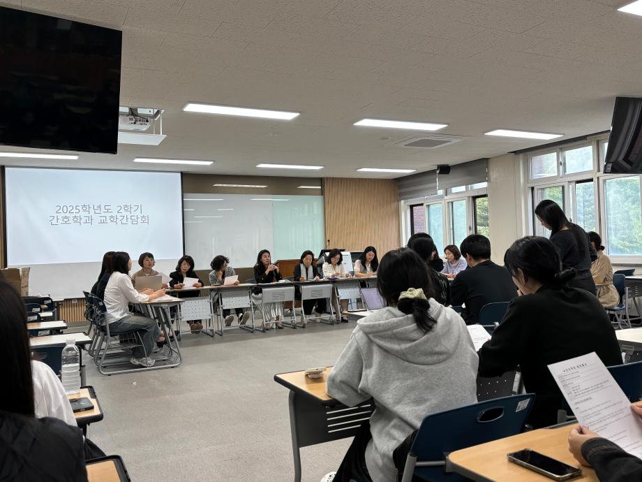 본문 시작 홈으로 커뮤니티 학과소개 교수소개 교육과정 학과소식 학과특성화 사업 커뮤니티 홈페이지가이드 포토갤러리 학사일정 포토갤러리 학생회 학과동아리 학과 취업정보 동창회 학과운영개선의견 발전기금 포토갤러리 페이스북 트위터 프린트 2025년 2학기 간호학과 교학간담회 간호학과 352 2025-09-24 세명대학교 간호학과에서는 교수님들, 학회(학생회), 행정실이 한자리에 모여 학과 운영에 대한 다양한 의견을 나누는 '간호학과 교학간담회'를 진행했습니다. 학생들의 목소리를 직접 듣고, 교수님과 행정실이 함께 고민하며 더 나은 교육환경과 학과 문화를 만들기 위한 뜻깊은 소통의 시간이었습니다.✨ 앞으로도 ‘함께 만들어가는 간호학과’를 위해 소통과 협력을 이어가겠습니다! 목록 이전🎉 세명대학교 간호학과 30주년 기념행사 🎉 Nursing Bridge: 간호, 세대를 잇다 다음 의림여중 전공체험 담당부서 : 간호학과 담당자 : 서예지 연락처 : 043-649-1357 최종수정일 : 2024-10-26 만족도조사 만족도 조사 이 페이지에서 제공하는 정보에 대하여 만족하시나요? 매우만족 만족 보통 불만족 매우불만족