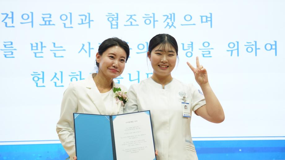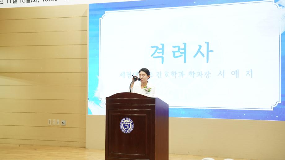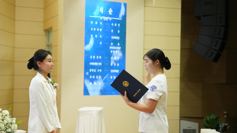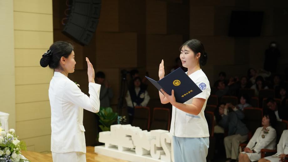 선서식에서는 총장님과 충북간호사회 회장, 간호학과 동창회장의 축사가 이어졌으며, 선서생 가족들의 영상 축하 메시지도 상영되어 행사에 따뜻한 감동을 더했다. 임상실습을 앞둔 간호학과 2학년 학생들은 나이팅게일의 숭고한 정신을 되새기며, 전문역량과 사명감을 갖춘 간호사로 성장하겠다는 의지를 다시 한 번 다졌다. 서예지 학과장은 “나이팅게일 선서의 의미를 마음 깊이 새기고, 어떤 현장에서도 생명존중의 가치를 실천하는 참된 간호사가 되길 바란다”고 말했다.