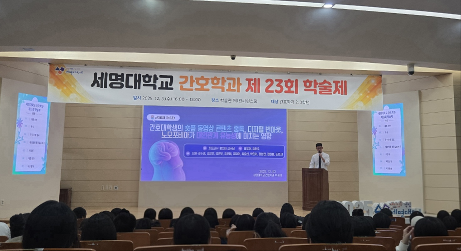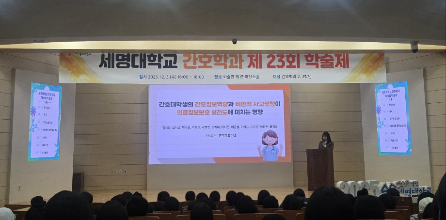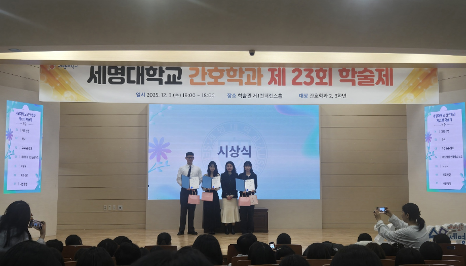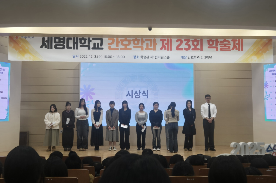 본문 시작 홈으로 커뮤니티 학과소개 교수소개 교육과정 학과소식 학과특성화 사업 커뮤니티 홈페이지가이드 포토갤러리 학사일정 포토갤러리 학생회 학과동아리 학과 취업정보 동창회 학과운영개선의견 발전기금 포토갤러리 페이스북 트위터 프린트 제 23회 간호학과 학술제 간호학과 571 2025-12-08 12/3 진행된 📝 2024 학술제 발표와 ✈ 해외 인턴십 경험 공유 후기가 학과 블로그에 업로드되었습니다. 발표 현장과 생생한 경험담이 궁금하다면 아래 링크를 확인해주세요 👇 🔗 링크 https://blog.naver.com/nursing_smu_official/224099825798 목록 이전📍 ‘임상실습 안전사고 ZERO를 위하여’ 특강 담당부서 : 간호학과 담당자 : - 연락처 : 043-649-1357 최종수정일 : 2024-10-26 만족도조사 만족도 조사 이 페이지에서 제공하는 정보에 대하여 만족하시나요? 매우만족 만족 보통 불만족 매우불만족