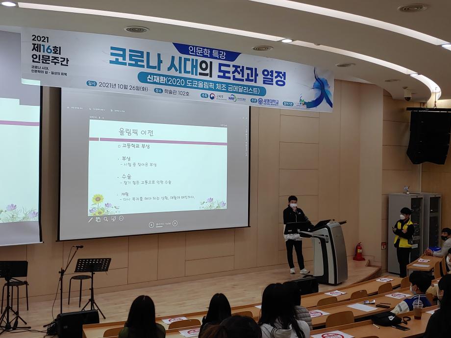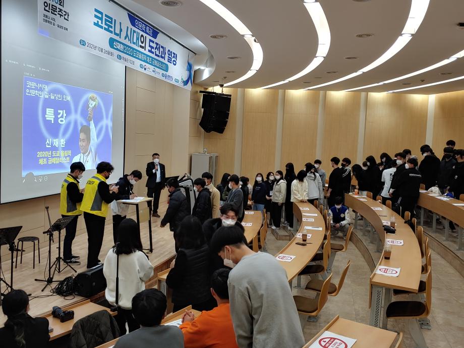 본문 시작 홈으로 커뮤니티 게시판 대학소개 교수소개 교양교육과정 교양교육 프로그램 커뮤니티 게시판 입학안내 홈페이지가이드 자료실 공지사항 자료실 학생 커뮤니티 취업정보 특강 및 기타 행사 CHARM리더십특강 CHARM커뮤니케이션 제천문화탐방과 스토리텔링 CHARM인문학콘서트~2018 향토문화탐방~2018 특강 및 기타 행사 포토 갤러리 특강 및 기타 행사 페이스북 트위터 프린트 2021 제 16회 인문주간(코로나 시대의 도전과 열정) 교양대학 2360 2021-10-28 [인문학특강] 코로나 시대의 도전과 열정_신재환(2020 도쿄올림픽 체조 금메달리스트) 목록 이전2021 세명 진로 Festival 다음 2021 제16회 인문주간(지역 예술인과 함께 하는 문화 예술 작품 전시회) 담당부서 : 교양대학 담당자 : - 연락처 : 043-649-7065 최종수정일 : 2024-10-26 만족도조사 만족도 조사 이 페이지에서 제공하는 정보에 대하여 만족하시나요? 매우만족 만족 보통 불만족 매우불만족