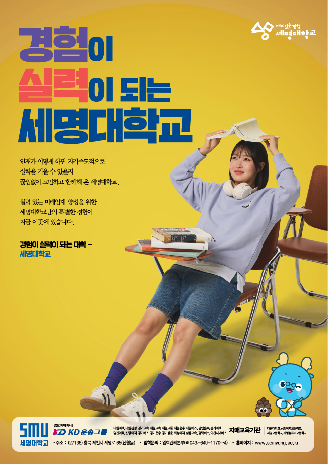 본문 시작 홈으로 학과생활 학과소개 교수소개 교과과정 학과생활 홈페이지가이드 사진게시판 공지사항 사진게시판 전공자료실 동아리 학과행사 사진게시판 페이스북 트위터 프린트 [세명대학교] 세명대학교 홍보 포스터 산업디자인학과 152 2025-11-04 목록 이전[학생처] 2025 「제천 투어의 날」행사 참여 안내 다음 [대학혁신지원단] VR/AR체험관 교육 프로그램 신청 안내 담당부서 : 산업디자인학과 담당자 : - 연락처 : 043-649-1436 최종수정일 : 2024-10-26 만족도조사 만족도 조사 이 페이지에서 제공하는 정보에 대하여 만족하시나요? 매우만족 만족 보통 불만족 매우불만족