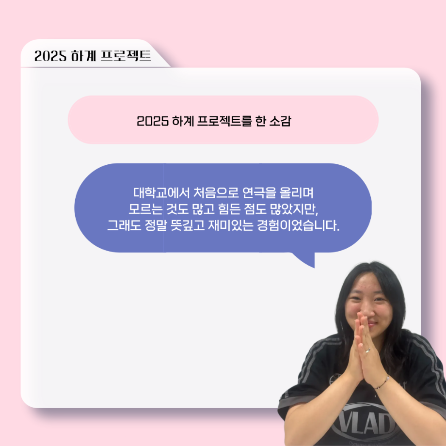 본문 시작 홈으로 커뮤니티 학과소개 입학정보 교수소개 학과과정 커뮤니티 공연예매 안내 홈페이지가이드 포토갤러리 공지사항 포토갤러리 작품DB 동아리 학사일정 학생회 포토갤러리 페이스북 트위터 프린트 ‘늘‘ 궁금한 이야기 - 하계 프로젝트 ‘사랑의 온도’팀 서이도役 < 함유진 > 연기예술학과 546 2025-11-10 . 목록 이전세명대학교 연기예술학과 과체전 다음 ‘늘‘ 궁금한 이야기 - 하계 프로젝트 ‘사랑의 온도’팀 주지환役 < 신승현 > 담당부서 : 연기예술학과 담당자 : - 연락처 : 043-649-1733 최종수정일 : 2024-10-26 만족도조사 만족도 조사 이 페이지에서 제공하는 정보에 대하여 만족하시나요? 매우만족 만족 보통 불만족 매우불만족