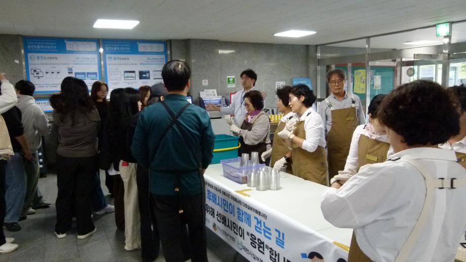 본문 시작 홈으로 커뮤니티 학과소개 교수소개 교육과정 현장실습 및 취업정보 커뮤니티 홈페이지가이드 포토갤러리 학과공지 학사일정 학생회 동아리 학생 소통 광장 포토갤러리 전공자료실 서식자료실 포토갤러리 페이스북 트위터 프린트 [사회복지학과] 중간고사 응원 간식 나눔 이벤트 진행 사회복지학과 199 2025-11-05 제천시실버복지관에서 학생들의 중간고사를 응원하기 위해 간식 나눔 이벤트를 진행해주셨습니다. 목록 이전[학생회] '우리 내일 놀래?' 행사 진행 다음 [사회복지학과] 찾아가는 통계 특강 진행 만족도조사 만족도 조사 이 페이지에서 제공하는 정보에 대하여 만족하시나요? 매우만족 만족 보통 불만족 매우불만족