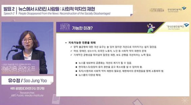 최근 개최된 한국언론진흥재단 ‘2022 KPF 저널리즘 컨퍼런스’에서 국내외 언론인과 전문가들의 주된 관심은 '기후위기'와 '사회적 약자'였습니다. 아직도 우선 수위에서 밀리는 기후변화 보도를 늘리고, 상대적으로 부족한 여성, 장애인, 성 소수자 등 사회적 약자에 대한 관심도 높여야 한다는 것입니다.
