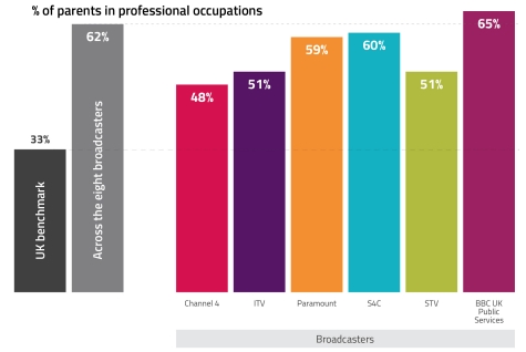 영국 방송산업에는 어떤 사람들이 종사하고 있을까요? 조사 결과에 따르면, 8개 영국 방송사의 여성 인력 비중은 49%로 영국 평균인 48%를 넘어서는 것으로 나타났습니다. 또한 부모의 직업과 관련해 전문직 종사자의 자녀가 영국 방송산업 인력의 62%를 차지했습니다.