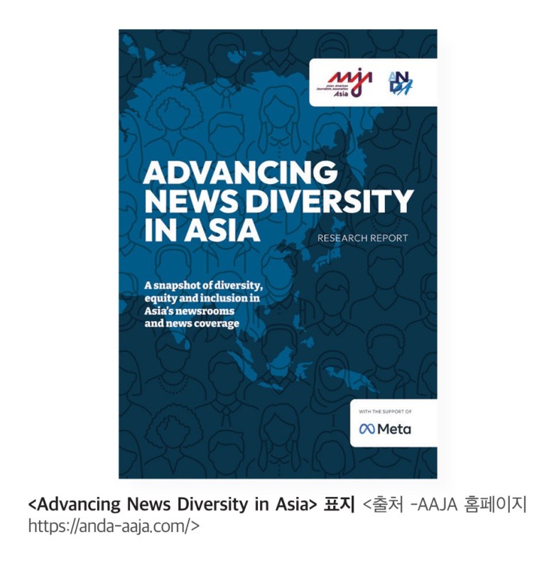 "2022년 4월, 아시안아메리칸기자협회(AAJA) 아시아 지부는 한국, 대만, 싱가포르, 인도네시아, 일본, 필리핀, 홍콩 등 아시아 7개 국가의 DEI를 연구한 결과를 발표했다. ‘ANDA 프로젝트’라는 이름으로 진행된 본 연구 결과를 통해 아시아 국가 언론인들의 미디어 다양성에 대한 인식을 확인해 본다."