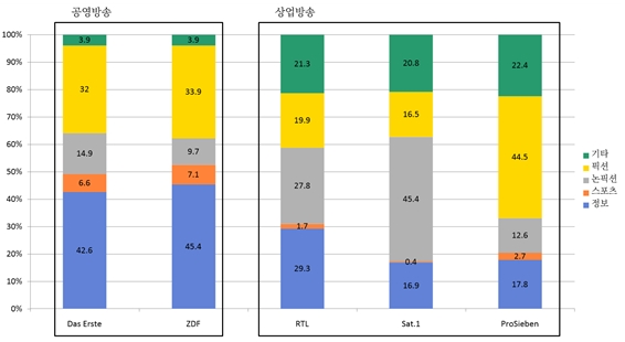 "독일의 지역 공영방송 연합인 아에르데(ARD)와 제2 공영방송사인 체데에프(ZDF)는 지난 1985년부터 미디어 분야 전문 조사회사인 GöfaK에 의뢰하여 독일 지상파 종합편성 채널로 제공하는 공영방송 및 상업방송의 프로그램 편성을 분석하고 있다. 올해 발간된 정보 프로그램 분석에 포함된 채널은 공영방송 채널인 다스에르스테(Das Erste)와 ZDF, 상업방송 채널인 에르테엘(RTL), 자트아인스(Sat.1)와 프로지벤(ProSieben) 등 5개 채널이다. 장기 연구로 진행되는 지상파 채널들의 프로그램 분석은, 이익을 추구하는 상업방송과 달리, 사회적으로 부여 받은 공적 책무를 공영방송이 어떻게 수행하고 있는지를 확인하기 위한 자료로 사용된다."