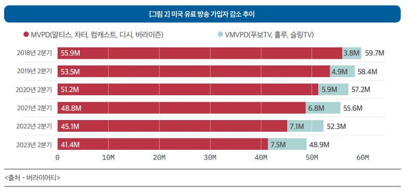 "케이블TV로 방송 콘텐츠를 시청하던 시대가 저물고 있다. 미국의 케이블TV 사업자들은 FAST, 스트리밍과 묶음 상품을 구성하는 등 구독자를 붙잡기 위해 다양한 시도를 하고 있다. 국내 상황도 크게 다르지 않다. 케이블TV 시장 현황을 살펴보고 미래를 전망해본다."